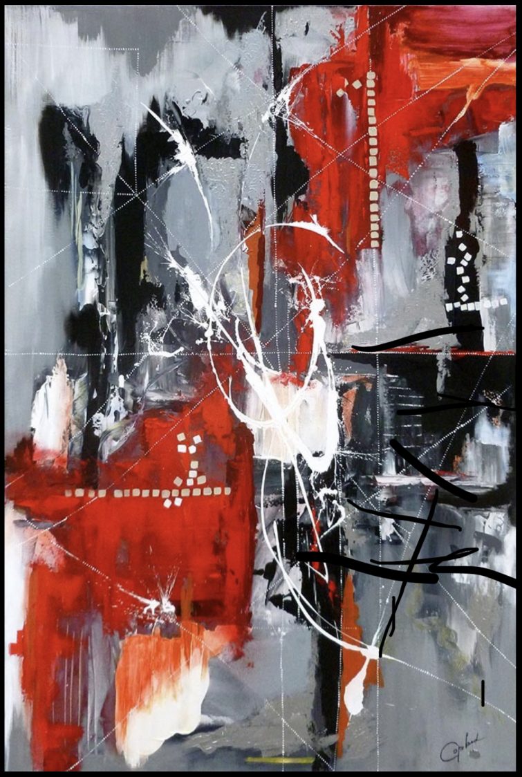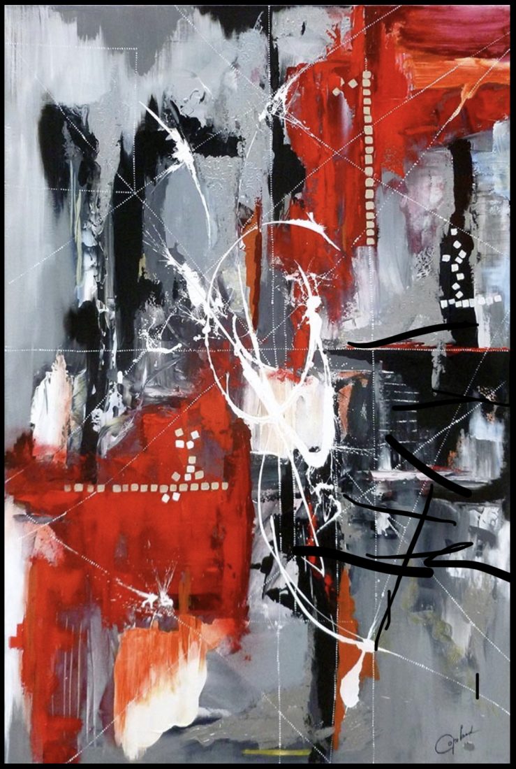 VENDU | TOUT FEU,TOUT FLAMME | 40 po. x 30 po. ( 101,5 cm x 96 cm) | Acrylique